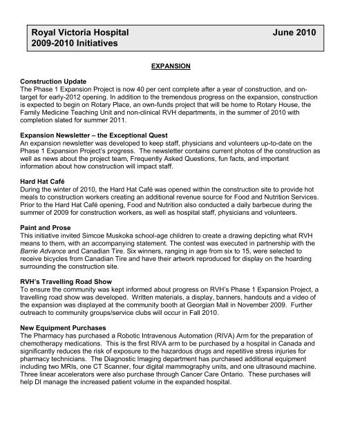 Royal Victoria Hospital June 2010 2009 2010 Initiatives